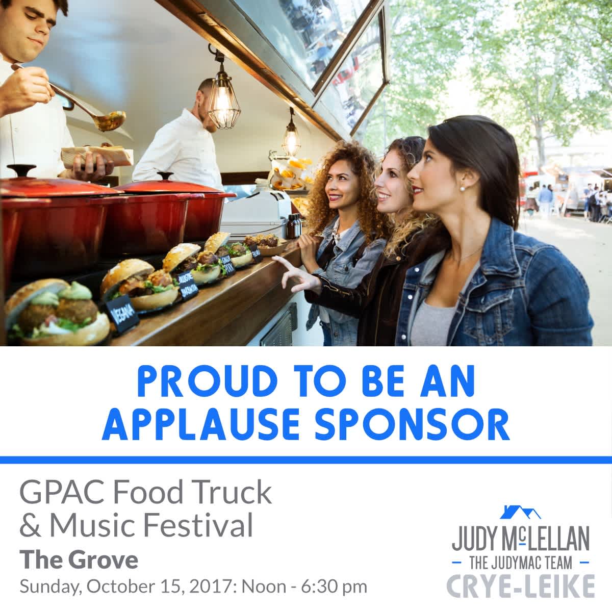 This weekend, the JudyMac Team of Crye-Leike Realtors is proud to partner with the Germantown Performing Arts Center as an Applause Sponsor for the annual GPAC Food Truck & Music Festival ! If you’re a fan of great live music, food truck fare, and free family-friendly events, then this is the place to be Sunday, October 15, starting at 12 p.m. Keep reading for more details!